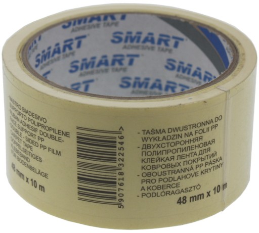 Taśma dwustronna SMART zalecana do podklejania wykładzin, prac biurowych lub przyklejana ulotek reklamowych. Delikatna warstwa folii o mlecznym zabarwieniu z klejem mocno przylega do podłoża po obydwu stronach.