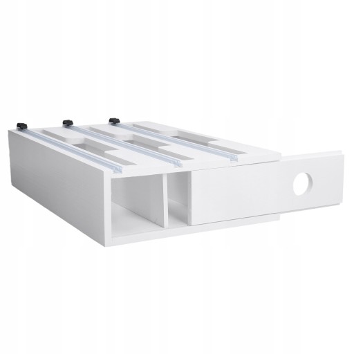 3. Umieszczenie: Można umieścić w szufladzie lub zawiesić na ścianie, większy otwór pośrodku ułatwia znalezienie rolek.