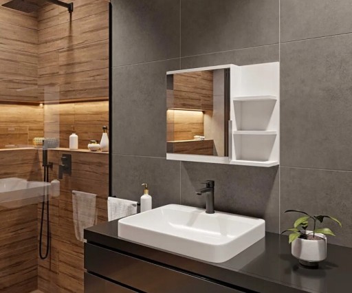 Ta szafka łazienkowa z lustrem świetnie sprawdzi się we wnętrzach w stylu nowoczesnym, skandynawskim czy japandi. Wyróżnia się uniwersalnym wzornictwem, które nie wyjdzie z mody