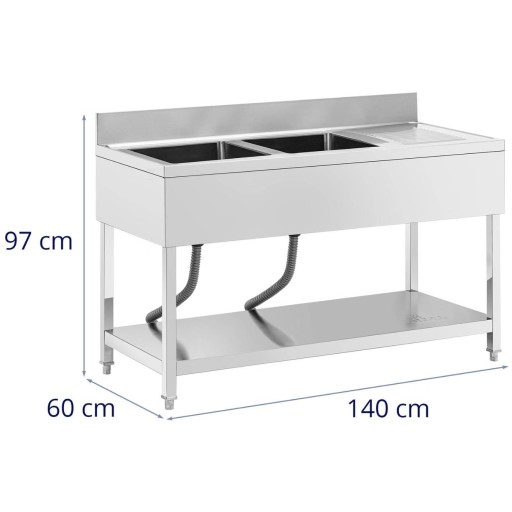 Zlew basen dwukomorowy z ociekaczem półką i rantem 140 x 60 x 97 cm