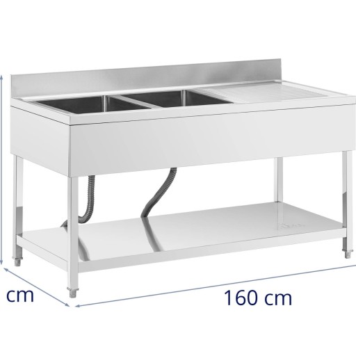Zlew basen dwukomorowy z ociekaczem półką i rantem 160 x 70 x 97 cm