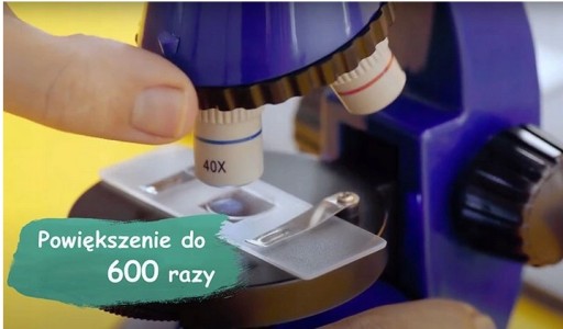 Mikroskop posiada 3 powiększenia: x60, x150, x600. W środku znajduje się instrukcja w języku polskim.