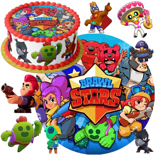 ВОЛНА ДЛЯ ТОРТА 20СМ - BRAWL STARS ЛЕОН ЭДГАР + ПЕРСОНАЖИ + ТЕКСТ СВОБОДНОГО ИМЕНИ