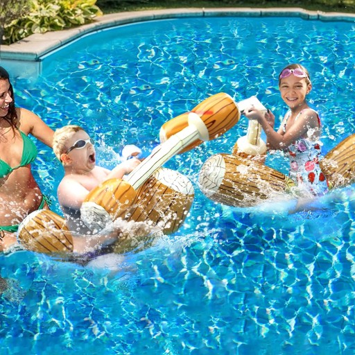 🤽♀️🤽♀️🤽♀️【4 nadmuchiwane zabawki basenowe dla 2 zabawy】 Nadmuchiwany zestaw do pływania basenowego zawiera 2 deski do siedzenia i 2 kijki spacerowe. Drewniane deski mają pogłębioną konstrukcję, na której można wygodnie siedzieć. Gracze siedzą na drewnianych krokach i utrzymują chodnik. I przychodzi do prawdziwego "ighting" z przyjaciółmi i rodziną na wodzie. Kto po walce siedzi jeszcze na floszu, wygrywa. (Materiał przyjazny dla środowiska do wielokrotnego użytku)