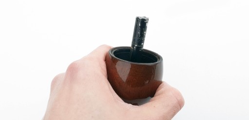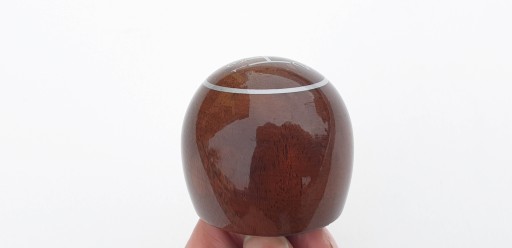 Gałka ogólnie w ładnym stanie. Oczywiście posiada jakieś zarysowania (głównie to widoczne na rozpisce, w okolicy literki "R"), ale drewno nie jest popękane, nie matowieje, nie łuszczy się - jest fajny połysk. Jak widać na zdjęciach jest kawałek pręta lewarka do ściągnięcia (nie wiem jak te gałki były montowane/demontowane, czy były nabijane czy wkręcane dlatego to pozostawiam przyszłemu nabywcy).