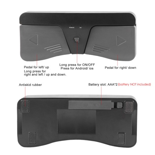 Uwolnij ręce: Bezprzewodowy pedał przewracania stron jest przeznaczony do zdalnego sterowania przewracaniem stron nut w aplikacji muzycznej za pomocą stopy. Może uwolnić Twoje ręce i sprawić, że Twoja muzyka będzie znacznie płynniejsza.
