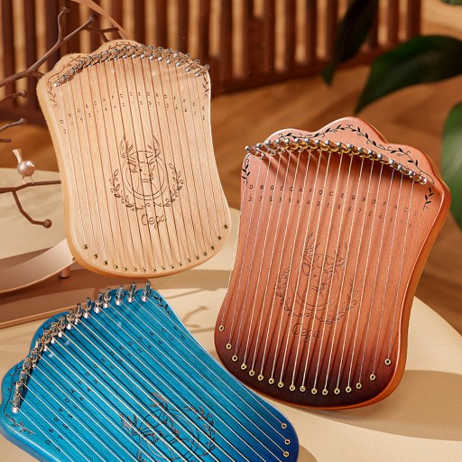 Przenośna harfa liryczna ma mały kompaktowy rozmiar, co jest bardzo wygodne, aby zabrać ją w dowolne miejsce.