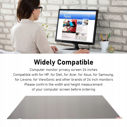 1. Szeroka kompatybilność: 24-calowy filtr ekranu laptopa jest kompatybilny z HP, Dell, Acer, Asus, Samsung, ViewSonic i innymi markami 24-calowych monitorów.