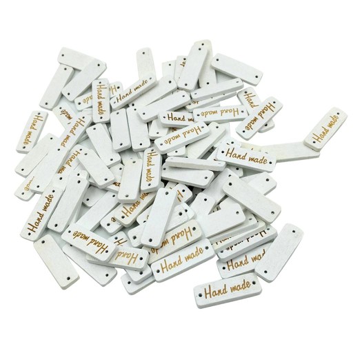 50 sztuk 2 otwory drewniane drukowane etykiety "ręcznie robione" metki, guziki