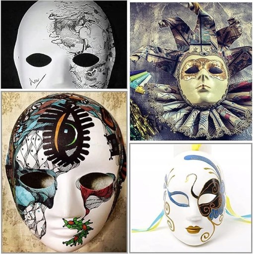 🤖Zrób to sam: każda niepomalowana maska maskująca jest czysto biała i możesz ułatwić narysowanie wybranych kolorów i wzorów lub stworzyć własną, niepowtarzalną maskę, która spełni Twoje różne potrzeby. Twórz także wspaniałe przedmioty rękodzielnicze, które dzieci będą mogły malować i dekorować na zajęciach plastycznych. Przed malowaniem naszkicuj projekt ołówkiem. Pozwala to uniknąć odpadów spowodowanych błędami w malowaniu