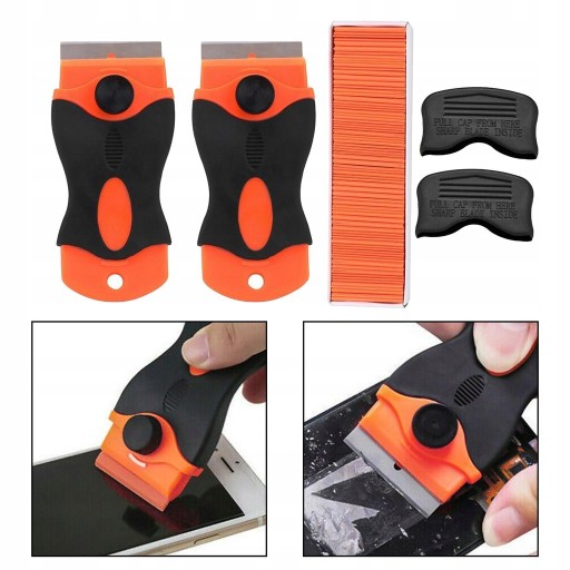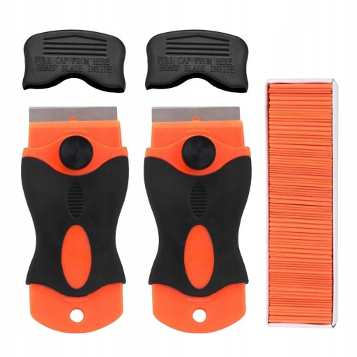 Pakiet zawiera: 2 sztuki skrobaka do golenia. 100 sztuk plastikowego ostrza.