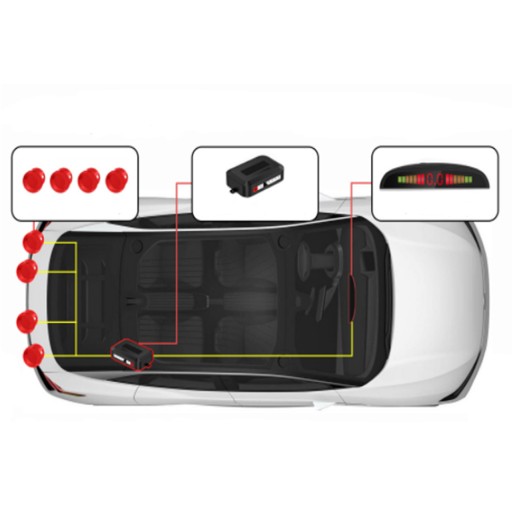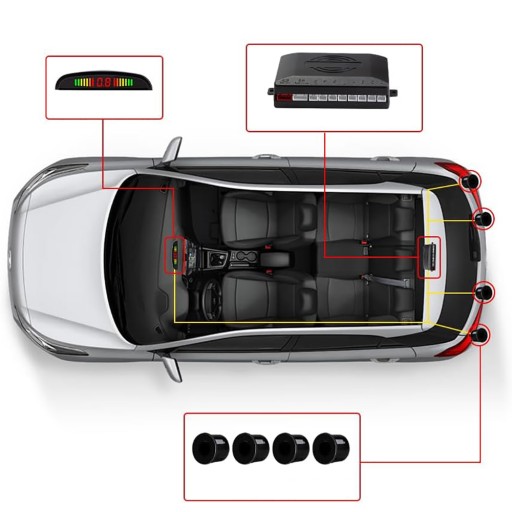 Zestaw czujników parkowania to doskonały prezent dla każdego kierowcy. Uniwersalne ultradźwiękowe 4-sensorowe czujniki parkowania z wbudowanym buzzerem, który nadaje sygnał dźwiękowy, zwiększający swoją częstotliwość dźwięku wraz ze zmniejszaniem się odległości od przeszkody.