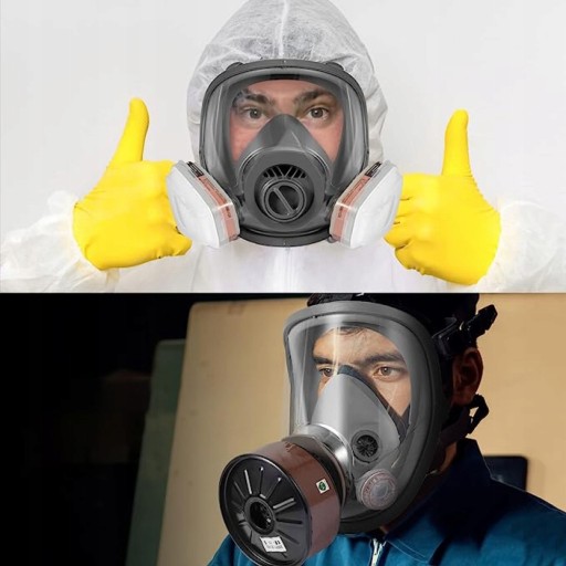 ✔️【Ergonomiczny i wygodny】: Maska gazowa jest wykonana z wysokiej jakości gumy i jest wygodna w noszeniu. Regulowany pałąk pasuje do głów większości ludzi. UWAGA: Z tym respiratorem pełnotwarzowym nie można nosić okularów. Po założeniu wymagany jest test szczelności.