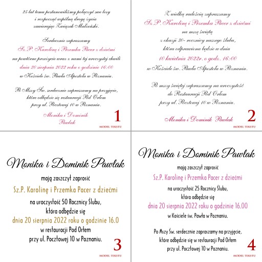 - pełna personalizacja zaproszenia - na zaproszeniu umieszczamy wszystkie twoje dane.