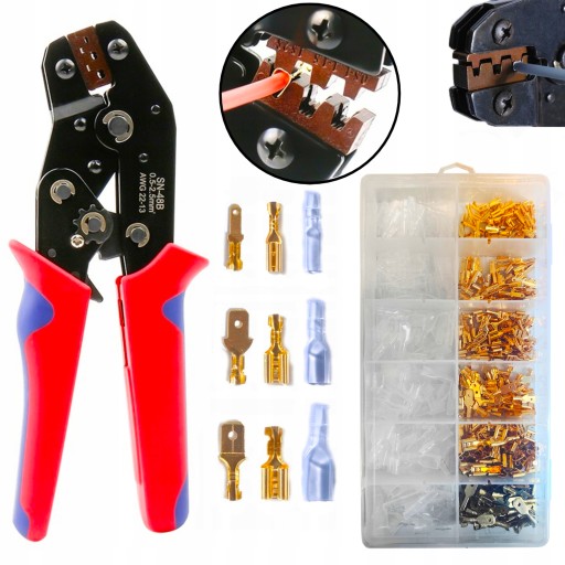 Zaciskarka + Powiększony Zestaw 450 szt konektorów samochodowych z osłonkami izolacyjnymi :