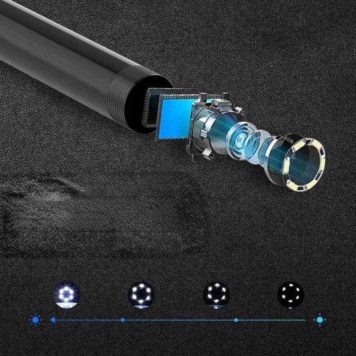 [8 diod LED i jasne światło latarki]: Wyposażony w 8 regulowanych diod LED na końcówce kamery boroskopowej, zapewniający wyraźny obraz nawet w ciemności lub słabym oświetleniu. Za endoskopem znajduje się wbudowana latarka do inspekcja w nocy.Świetne narzędzie do inspekcji!Wbudowany akumulator 3000mAh, wsparcie ciągłej pracy przez 4-5 godzin.