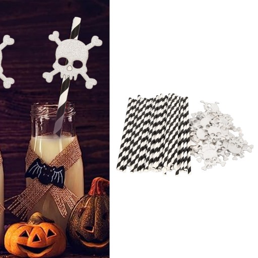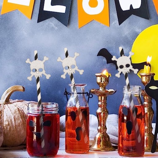 . SŁOMKI Z CZASZKA NA HALLOWEEN 19.5cm 50SZT