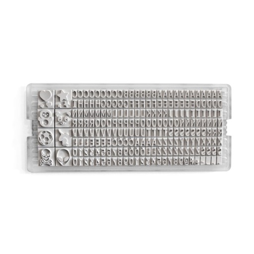 - Pęsetę ułatwiającą montaż treści pieczątki przy wykorzystaniu czcionek z zestawu;