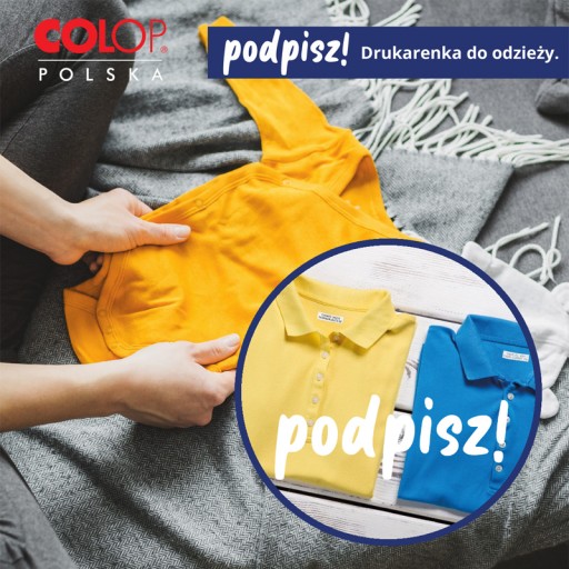 - Pieczątkę COLOP IQ wyposażoną w poduszkę z tuszem do tkanin;