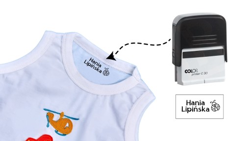 Szczególnie polecana jest rodzicom mającym więcej niż jedni dziecko, szkołom, placówkom kolonijnym, szpitalom, zakładom produkcyjnym - możesz zmieniać napis na pieczątce kiedy tylko chcesz. Kupujesz raz, projektujesz ile chcesz! Warto oznakować nią odzież BHP, odzież dla dzieci, ubrania pozostawiane na czas treningu w szatni, czy odzież seniorów. Starcza do 1000 odbić!