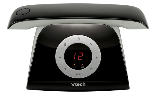 Uwagę zwraca przede wszystkim nietypowa biało-czarna stacja bazowa, która ma nowoczesny akcent w formie okrągłego wyświetlacza LCD z podświetleniem.