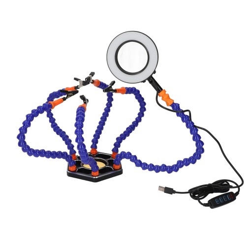 Funkcja:1. Regulowany kąt: 6 regulowanych ramion, które mogą obracać się o 360 stopni, a krokodylki ze stali nierdzewnej mogą mocno trzymać części, umożliwiając umieszczenie stacji w dowolnym miejscu i dostosowanie jej do miejsca pracy.