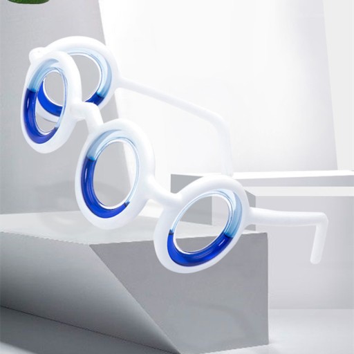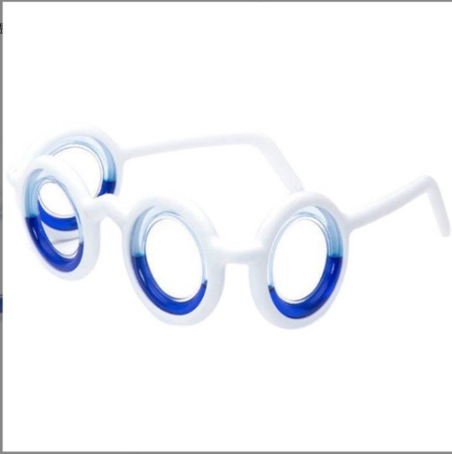 ☑️ Okulary na chorobę lokomocyjną nie mają soczewek, ale są wyposażone w kółko z płynnymi okularami.