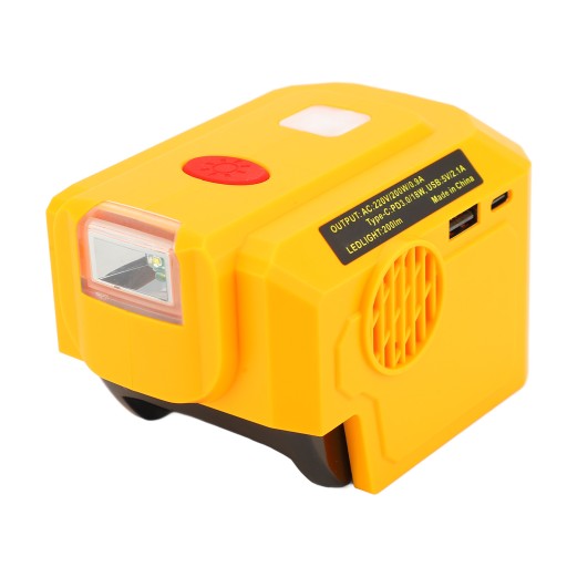 Szerokie zastosowanie: Ten falownik zasilający ma szeroki zakres zastosowań, może być używany na zewnątrz, w gospodarstwie domowym, w handlu i innych sytuacjach, obsługuje moc wyjściową 200 W, ma zastosowanie do różnych baterii litowych 20 V.