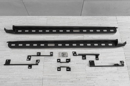 W zestawie komplet stopni bocznych (prawy i lewy), elementy montażowe oraz instrukcja. Progi montowane są na fabrycznych punktach montażowych. Montaż stopni nie wymaga wiercenia dodatkowych otworów! Zalecamy profesjonalny montaż w warsztacie (z doświadczenia wiemy że najlepiej skorzystać z usług zakładu lakierniczego lub blacharskiego ponieważ to te zakłady zajmują się najczęściej montażem listew, dokładek oraz stopni, więc montaż dla tych zakładów jest czynnością intuicyjną).