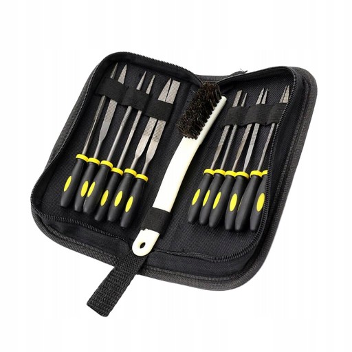 Rozmiar plików: 14 cm x 3 mm i 16 cm x 4 mm Zawiera 12-czciowy pilnik do drewna z pdzelkiem do czyszczenia pilników, pudekiem na czci i czarnym pudekiem do przechowywania
