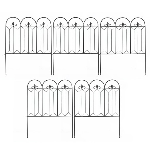3. Ozdobne metalowe ogrodzenie ogrodowe składające się łącznie z 5 paneli. Wykonane z czarnego żelaza, odporne na rdzę i warunki atmosferyczne, trwałe.