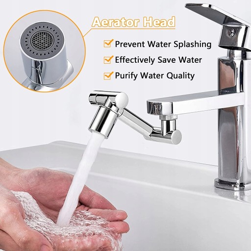 带过滤水龙头的1440°旋转风扇 -全新升级的360°1080°机械臂水龙头采用4关节设计,可全方位360°旋转,弯曲或折叠,水槽的每个角落都易于清洁。在清洁面部、头发和牙齿的同时享受极致舒适,特别适合儿童、老人和长头发的女性