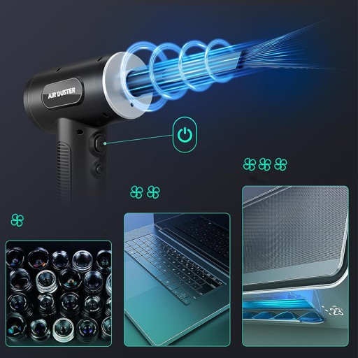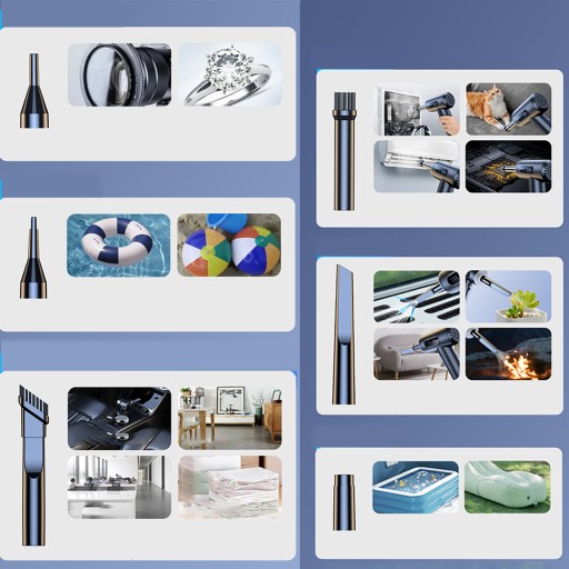 - Może być stosowany do czyszczenia komputerów, klawiatur, aparatów fotograficznych, wentylatorów, samochodów, sof, rolet i sierści zwierząt domowych. Świetnie nadaje się do sprzątania domu, biura i usuwania kurzu samochodowego. Może również nadmuchać koła do pływania, nadmuchiwane łóżka, piłki do jogi, nadmuchiwane domy i łodzie ratunkowe.