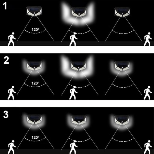 - Lampa świeci po zmierzchu przygaszonym światłem, a gdy wykryje ruch zaczyna świecić całkowitą mocą.