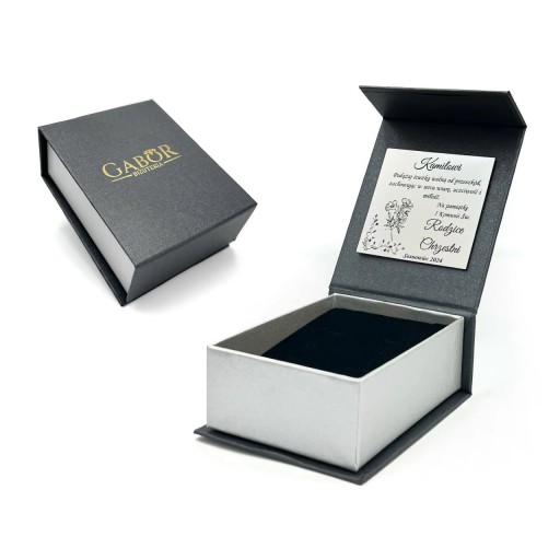 Aby otrzymać pudełeczko z grawerem, prosimy o skorzystanie z opcji "ZAPAKUJ NA PREZENT", w innym przypadku produkt zostanie wysłany w pudełeczku bez blaszki.