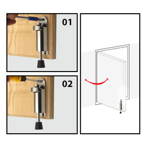 UTRZYMUJE DRZWI SILNIE OTWARTE Odbojnik ze sprężyną i wywieraną prawidłowo na drzwi otwarte, mogą wystąpić drzwi w odpowiednich pozycjach. Siła zabezpieczająca bezpieczne zamknięcie drzwi. Brak drżenia drzwi i brak hałasu drzwi na wietrze