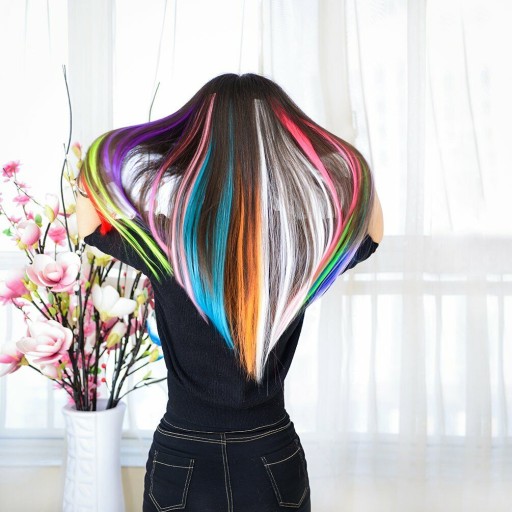 Kolorowe proste pasmo włosów wykonane z wysokiej jakości włókna syntetycznego kanekalonu ,wyposażone jest w mały klips do zamocowania , łatwe i proste w użyciu , możesz je dowolnie modelować /do 150C/ i skracać nożyczkami wg uznania