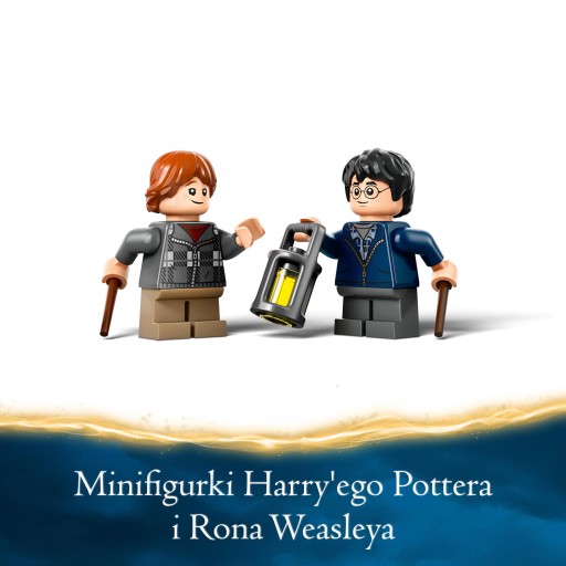 ★ Dwie postacie LEGO® Harry Potter™ — zestaw zawiera minifigurki Harry'ego Pottera i Rona Weasleya™ z wesołymi lub przestraszonymi twarzami do wyboru, a także dwie różdżki i lampion