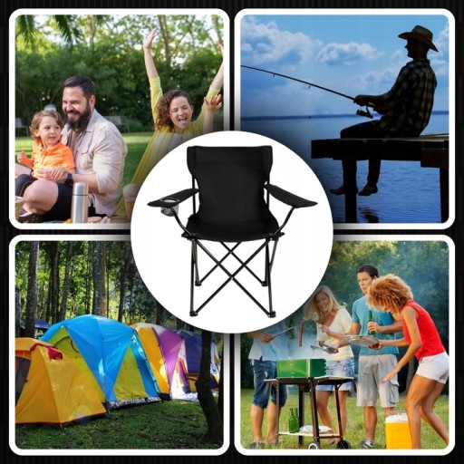 Krzesło składane turystyczne dla każdego - uniwersalny czarny kolor