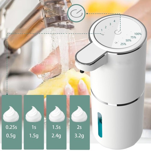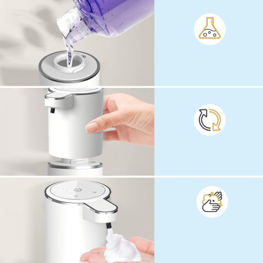 Ten elektryczny dozownik mydła w piance ma wbudowaną baterię 500 mAh zapewniającą długą żywotność, więc nie musisz się martwić o jego zbyt częstą wymianę.
