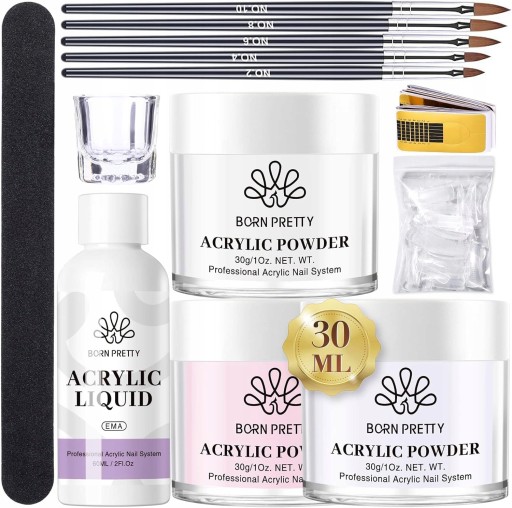 BORN PRETTY - Proszek akrylowy do paznokci Rosa, płyn akrylowy do paznokci, Zestaw startowy, Kompletny.