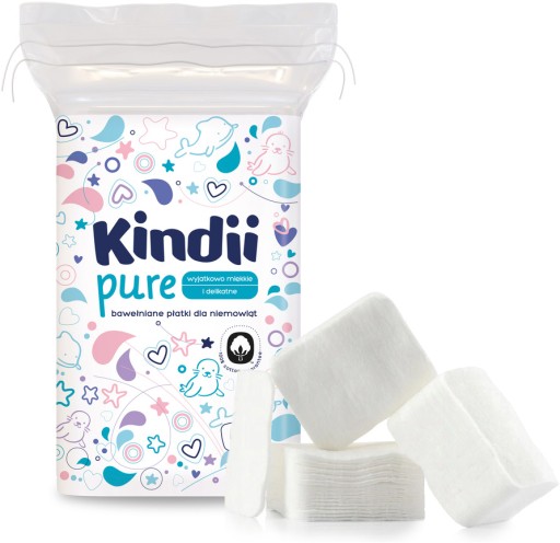 Wrażliwa i delikatna skóra dziecka wymaga szczególnej troski i wyspecjalizowanej pielęgnacji, dlatego też powstała linia KINDII PURE, w której skład wchodzą rozmaite specjalistyczne produkty przeznaczone do pielęgnacji niemowląt i małych dzieci. Bawełniane płatki to jeden z tych produktów. Wykonane ze 100% czystej bawełny, o delikatnych brzegach pozwalają na wygodną pielęgnację z użyciem wody, oliwki, kremu lub zasypki. Są wyjątkowo miękkie i co ważne, nie pozostawiają włókien. Mają duży, wygodny format.