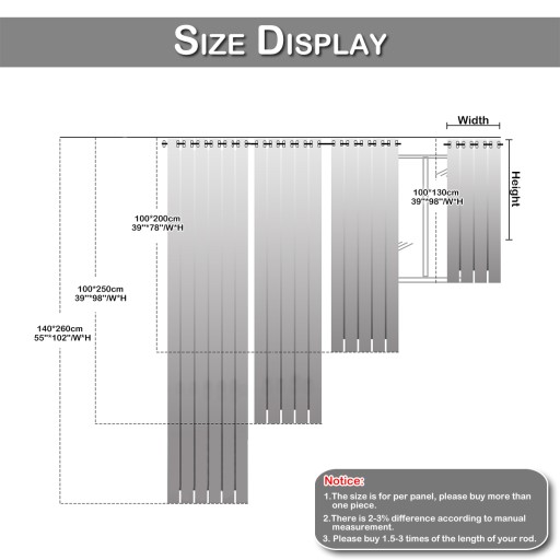 - Rozmiar (szer. * wys.): 100 * 130 cm/39 ''* 51 '' (szer. * wys.); 100*200 cm/39 ''* 78'' (szer. * wys.); 100 * 250 cm / 39 '' * 98 '' (szer. * wys.); 140*260 cm/55 ''* 102'' (szer. * wys.);
