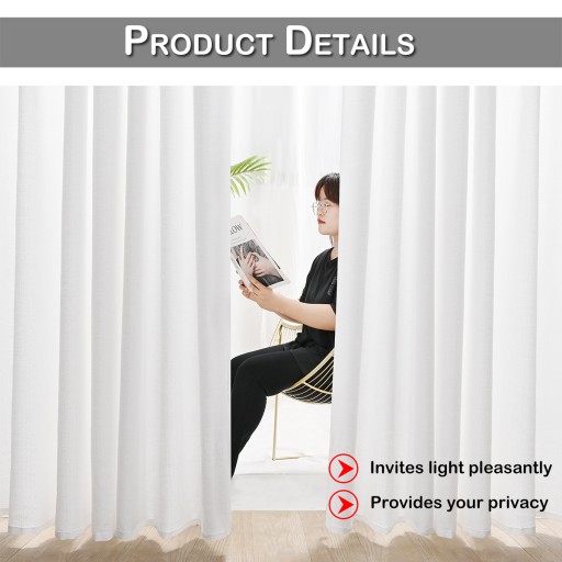- Grube, przezroczyste zasłony okienne tworzą miękkie światło słoneczne, tekstura zapewnia przyzwoitą miarę prywatności;