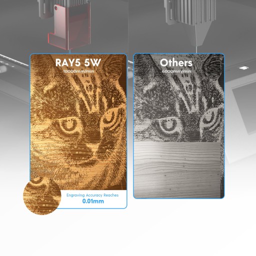 Oprócz różnych mocy, różne są również obszary robocze. Powierzchnia RAY5 5W i 10W wynosi 400 x 400 mm (15,75 x 15,75 cala), powierzchnia RAY5 20W wynosi 400 x 365 mm (15,7 x 14,4 cala). Dostępne są również modele RAY5 5W i 10W, które wymagają aktualizacji. Pompa powietrza i RAY5 20W są dostarczane z pompą powietrza. RAY5 20W oferuje większą moc, co oznacza większą prędkość, dla użytkowników poszukujących zaawansowanych możliwości grawerowania i cięcia. Jeśli zależy Ci na wydajności i najwyższych wymaganiach dotyczących cięcia, wybierz RAY5 20W; Jeśli zdecydujesz się na dokonanie wstępnej i wstępnej grawerowania, wybierz RAY 5W i 10W.