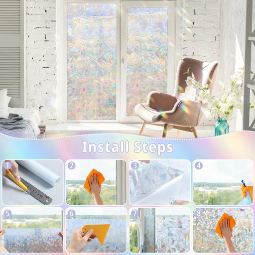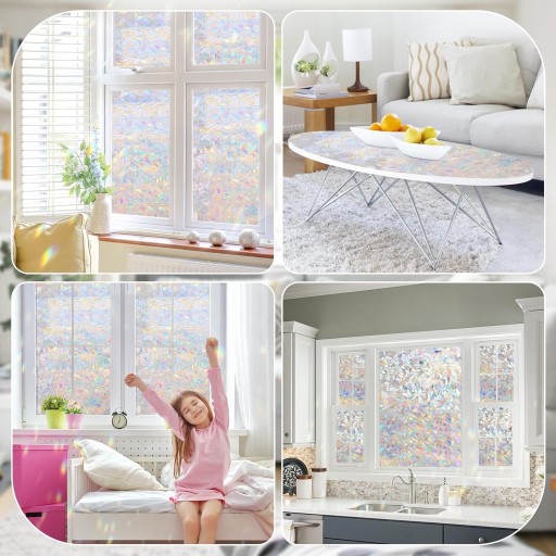 - Kiedy światło słoneczne przechodzi przez powierzchnię okna z tęczowej folii adsorpcyjnej, wytwarza niepowtarzalny efekt tęczy, dzięki czemu Twoje szkło wygląda jak piękne dzieło sztuki.