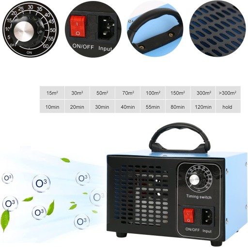- Funkcja czasowa urządzenia ozonowego w trybie cyklicznym pozwala regularnie eliminować stężenie zapachów w zależności od rzeczywistej wielkości pomieszczenia i rzeczywistych potrzeb. Po prostu podłącz, zaprojektuj, przełącz przełącznik i gotowe.