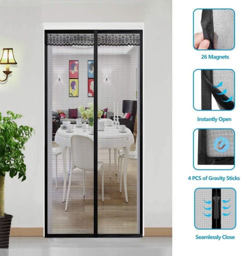 Wbudowane magnesy w systemie zamykającym pozwalają na otwieranie i zamykanie moskitiery bez użycia rąk. Rozwiązanie to sprawdzi się idealnie gdy ręce są zajęte ale również zwierzęta skorzystają na tym rozwiązaniu. Nie ma potrzeby ciągłego wpuszczania i wypuszczania, zwierzęta po prostu przechodzą przez moskitierę a resztę załatwiają wbudowane magnesy.