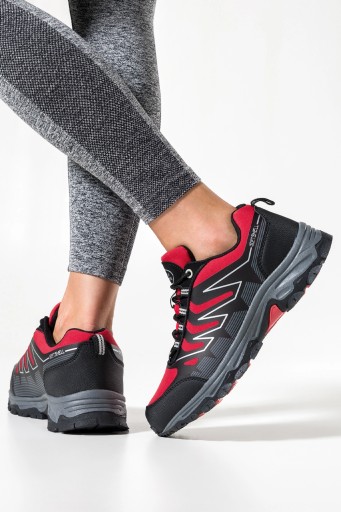 Czerwone buty trekkingowe damskie model B2113-5 zostały wykonane z wysokogatunkowych materiałów co gwarantuje doskonałą jakość i dopasowanie do stopy. Obuwie typu softshell to lekkie, wygodne buty sportowe z nowoczesnych i trwałych materiałów. Niezastąpione na spacer, do biegania lub na wyprawy górskie. To obuwie idealne dla aktywnych kobiet, lubiących spędzać czas na łonie natury, jak również miłośniczek górskich wycieczek. Cholewka wykonana jest z oddychającego materiału softshell, który ma również właściwości wodoodporne. Wnętrze obuwia w okolicach pięty i kostki jest wypełnione miękką pianką, a podszewka z siatki poprawia wentylacje i higienę stóp. Gumowa trwała podeszwa jest lekka, elastyczna i antypoślizgowa wykończona żłobieniami dzięki temu buty są odporne na wszelkie nierówności powierzchni. Amortyzujące właściwości buta pomagają zachować stabilność, przyczepność oraz wysoki komfort podczas intensywnego użytkowania. Zaokrąglony czubek butów zapewnia dodatkową ochronę dla palców, minimalizując ryzyko kontuzji podczas przemierzania trudnego terenu. To rozwiązanie szczególnie docenią osoby, które często wędrują po kamienistych szlakach. Sznurowane zapięcie pozwala na idealne dopasowanie buta do stopy, co zwiększa komfort noszenia i stabilność. Sznurowadła są wytrzymałe i odporne na przetarcia, co zapewnia długotrwałe użytkowanie. Wygodne i stabilne buty trekkingowe są niezbędne, aby cieszyć się w pełni każdą wyprawą na łono natury. Świetnie sprawdzą się podczas górskich wypraw jak i leśnych wędrówek. Posiadają niską cholewkę przed kostkę. Czarne dodatki to idealny sposób, aby dodać obuwiu subtelności i szczypty uroku. Wytrzymała konstrukcja czyni ten model butem wielosezonowym, sprawdzającym się o każdej porze roku.
