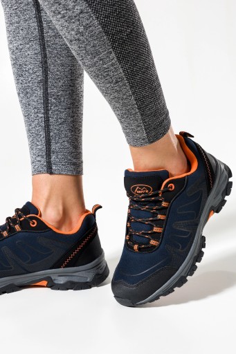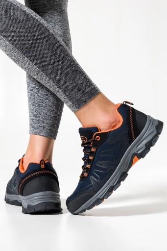 Granatowe buty trekkingowe damskie model B2116-5 zostały wykonane z wysokogatunkowych materiałów co gwarantuje doskonałą jakość i dopasowanie do stopy. Obuwie typu softshell to lekkie, wygodne buty sportowe z nowoczesnych i trwałych materiałów. Niezastąpione na spacer, do biegania lub na wyprawy górskie. To obuwie idealne dla aktywnych kobiet, lubiących spędzać czas na łonie natury, jak również miłośniczek górskich wycieczek. Cholewka wykonana jest z oddychającego materiału softshell, który ma również właściwości wodoodporne. Wnętrze obuwia w okolicach pięty i kostki jest wypełnione miękką pianką, a podszewka z siatki poprawia wentylacje i higienę stóp. Gumowa trwała podeszwa jest lekka, elastyczna i antypoślizgowa wykończona żłobieniami dzięki temu buty są odporne na wszelkie nierówności powierzchni. Amortyzujące właściwości buta pomagają zachować stabilność, przyczepność oraz wysoki komfort podczas intensywnego użytkowania. Zaokrąglony czubek butów zapewnia dodatkową ochronę dla palców, minimalizując ryzyko kontuzji podczas przemierzania trudnego terenu. To rozwiązanie szczególnie docenią osoby, które często wędrują po kamienistych szlakach. Sznurowane zapięcie pozwala na idealne dopasowanie buta do stopy, co zwiększa komfort noszenia i stabilność. Sznurowadła są wytrzymałe i odporne na przetarcia, co zapewnia długotrwałe użytkowanie. Wygodne i stabilne buty trekkingowe są niezbędne, aby cieszyć się w pełni każdą wyprawą na łono natury. Świetnie sprawdzą się podczas górskich wypraw jak i leśnych wędrówek. Posiadają niską cholewkę przed kostkę. Pomarańczowe dodatki to idealny sposób, aby dodać obuwiu subtelności i szczypty uroku. Wytrzymała konstrukcja czyni ten model butem wielosezonowym, sprawdzającym się o każdej porze roku.